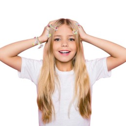 Ce kit complet comprend tous les accessoires pour réaliser jusqu'à 50 bijoux uniques qui s'accrochent partout !Les bijoux personnalisés peuvent s'accrocher partout : sur un bracelet ou encore des pinces à cheveux qui sont aussi inclus dans le coffret.