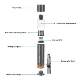 Le filtre à air en acier inoxydable lavable est durable et écologique. Il est couplé à un filtre HEPA haute performance, qui capture les allergènes et particules fines pour purifier l’air ambiant pendant le nettoyage.