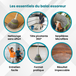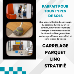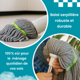 Simplifiez votre ménage avec un balai innovant conçu pour rendre chaque passage plus efficace et beaucoup moins fatigant. Grâce à son système d’essorage intégré et son manche télescopique, vous nettoyez votre sol en un clin d’œil, sans éclaboussures, sans vous pencher et sans effort.
